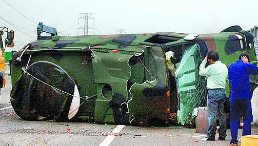 資電作戰(zhàn)指揮部表示,這輛車十月二十六日到位于桃園的“中科院”進(jìn)行年度定期保養(yǎng),昨自返回中部駐地時(shí),行經(jīng)南下彰化路段時(shí),疑因左后輪刺到尖銳物爆胎翻車,所幸駕駛兵及隨車的士官長毫發(fā)未傷。不過,士官長陳俊典見記者采訪時(shí),猛擋記者鏡頭并拿相機(jī)反搜證指稱:“這是通訊車恐怕會(huì)有外泄問題,希望不要拍攝!”