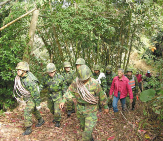 軍方和警義消昨天動(dòng)員700人力兵分六路,搜尋嘉義縣大埔鄉(xiāng)的農(nóng)義農(nóng)場(chǎng)與開元農(nóng)場(chǎng)、高雄縣那瑪夏鄉(xiāng)的二溪山、表湖與卓武山、飛機(jī)最后雷達(dá)光點(diǎn)消失位置的老人溪十四號(hào)橋?哲娨渤鰟(dòng)十一架次直升機(jī)貼地搜尋,可惜一無所獲。