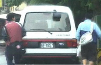 兩位民眾從便利店提了一大袋東西出來,外型方方的像飲料,兩人都穿運動服,其中一個還著短褲一派輕松的樣子,接著上了車,不過,這一看仔細可不得了,這車的側(cè)面有岸巡總隊的徽章,還有個紅十字,說明這是臺軍用救護車,卻被岸巡員在不是執(zhí)勤時穿便服拿來代步買飲料。