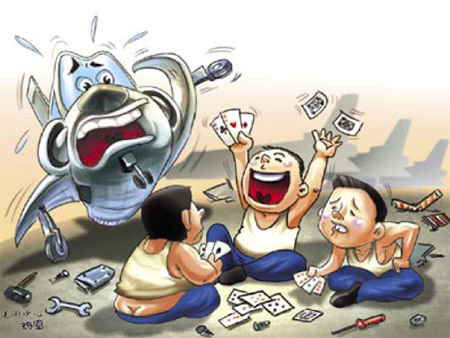 離譜的是,相距不到一個(gè)月后,負(fù)責(zé)臺(tái)軍各型發(fā)動(dòng)機(jī)修護(hù)的空軍第三后勤指揮部也發(fā)生違法聚賭狀況。一名官兵指出,在空軍戰(zhàn)機(jī)妥善率一直無(wú)法提升狀況下,后指部?jī)?nèi)的勤務(wù)中隊(duì)與發(fā)動(dòng)機(jī)修護(hù)廠內(nèi)士官兵,居然在3月22日晚上公然聚賭,被軍官巡查當(dāng)場(chǎng)查獲。