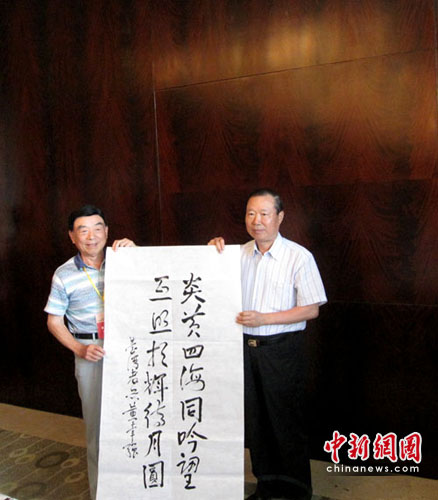 來自臺(tái)灣原海軍副總司令官沈方枰中將與大陸的海軍東海艦隊(duì)原司令員趙國鈞中將同為一組打球的兄弟,看到記者拍照,沈方枰中將對(duì)記者表示“來,給我們兄弟來一張!