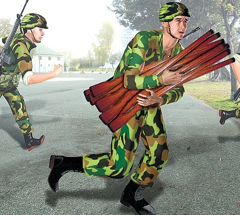 軍檢調(diào)查指出,郭景志還刻意指揮整排士兵跑來跑去,并下令蘇詠盛單獨將演習(xí)用的11把木槍(重約近15公斤)抱在身上,不論工作吃飯、上廁所,一律“槍不離身、抱一整天”。
