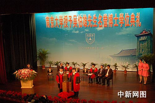 南京大學前身是創(chuàng)建于1902年的三江師范學堂,此后歷經(jīng)兩江師范學堂、南京高等師范學校、國立東南大學、第四中山大學、國立中央大學、國立南京大學等歷史時期,于1950年更名為南京大學。南京大學是大陸對臺交流合作最為密切的大學之一,吳伯雄成為該校歷史上首位被授予名譽博士學位的臺灣人士。