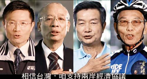 中新網(wǎng)4月14日電 據(jù)臺(tái)灣《聯(lián)合報(bào)》報(bào)道,為了宣傳兩岸經(jīng)濟(jì)合作架構(gòu)協(xié)議(ECFA),臺(tái)“經(jīng)濟(jì)部”請(qǐng)出捷安特自行車(chē)創(chuàng)辦人劉金標(biāo)、和友紡織董事長(zhǎng)卓欽銘、慶鴻機(jī)電董事長(zhǎng)王武雄、福助針織公司(華貴牌絲襪)總經(jīng)理魏平祺等人拍廣告,以“傳產(chǎn)F4”身分擔(dān)任代言人。