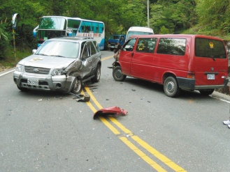 領(lǐng)隊(duì)邊雯雯和多名團(tuán)員提說(shuō),車子開到下山右彎道時(shí),對(duì)向車道突有輛休旅車想超過游覽車,開到他們的車道上,兩車都急忙轉(zhuǎn)向,他們搭的小巴車頭往左轉(zhuǎn)向,還是和休旅車的左側(cè)車頭擦撞;同團(tuán)第二輛小巴煞車不及,追撞到第一輛小巴,造成第一輛小巴的8名游客,第二輛的2名游客受傷。