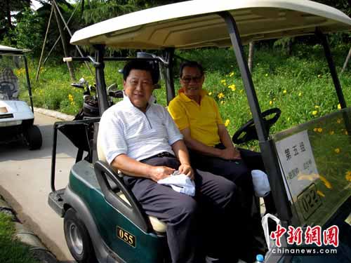 來(lái)自臺(tái)灣原海軍副總司令官沈方枰中將與大陸的海軍東海艦隊(duì)原司令員趙國(guó)鈞中將同為一組打球的兄弟,看到記者拍照,沈方枰中將對(duì)記者表示“來(lái),給我們兄弟來(lái)一張。”(完)