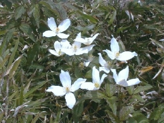 合歡山區(qū)最搶眼的花卉,非玉山山蓼莫屬,又稱“高山威靈仙”、“繡球藤”,四片白色花瓣要不注意到它都很難。玉山山蓼為多年生蔓性木質(zhì)藤本植物,喜愛陽光,5-6月間白色花簇生于葉腋,花朵大而顯眼,常見于路旁灌叢。