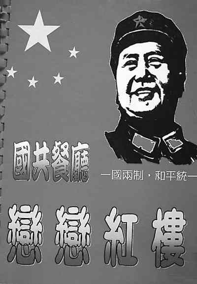我在金門旅游時(shí),幾位年輕的郵友帶我來到金門老街。這條老街據(jù)說已經(jīng)有幾百年的歷史了,大部分店鋪都保存著原有的風(fēng)貌。這些店鋪主要經(jīng)營(yíng)當(dāng)?shù)氐耐撂禺a(chǎn),比如金門貢糖、金門高粱酒、金門牛肉干、金門陳皮果,還有金門菜刀等,店鋪也像古代的酒店一樣,旗幡當(dāng)街飄揚(yáng),兩旁一盆盆的鮮花清香四溢,酒香花美,街道中央不時(shí)能看到百年的榕樹,盤根錯(cuò)節(jié)。海風(fēng)陣陣,這真是濤聲依舊,又見千年的滄桑,百年的風(fēng)雨,令人心曠神怡,不知今夕何夕。信步走來,我們想找個(gè)地方歇歇腳,喝喝咖啡。抬頭一看,前面“國(guó)共餐廳”4個(gè)大字極為醒目,紅旗飄揚(yáng),“走進(jìn)新時(shí)代”的歌聲清脆悅耳。我想:此時(shí)竟在何方,難道我們現(xiàn)在是在大陸嗎?難道國(guó)共雙方的代表曾在這里見過面嗎?我們帶著好奇心走進(jìn)了餐廳,美麗的小姐說著流利的普通話,熱情地歡迎我們,請(qǐng)我們?nèi)胱,為我們沏茶,而且馬上遞給我們一個(gè)菜譜。這菜譜一看,全是紅色,著軍裝的毛澤東像赫然在目,還有“一國(guó)兩制,和平統(tǒng)一”的口號(hào),還印著五星紅旗。打開菜譜一看,有不少大陸的名菜,也有毛澤東喜歡吃的紅燒肉、臭豆腐,真是令人激動(dòng)!