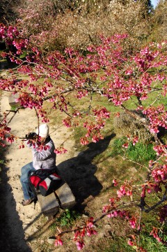 久聞阿里山是全臺灣櫻花最美的地方,光是從日本傳來的染井吉野櫻就多達(dá)1900多株,像是阿里山派出所、阿里山賓館、沼平車站及沿線、貴賓館、木蘭園、林務(wù)局招待館、三代木等處,都可以欣賞染井吉野櫻花海如雪的蹤影,三月中開始綻放、三月底進(jìn)入盛開期的染井吉野櫻,可說是阿里山櫻花季最美麗的主角。高山地區(qū)濕冷多霧,使花瓣呈淡雪色、花心粉紅的染井吉野櫻看起來像是一層層暈染在山頭的雪白云海,當(dāng)山間微風(fēng)掠過,迎面撲來如雪花般輕柔的櫻花雨,弱不禁風(fēng)的姿態(tài)讓人覺得凄美的悵然。但若是天氣晴朗的午后,黃昏前夕陽的光暈照射在櫻花上,平?雌饋泶嗳跄郯椎幕ò赆莘鹞×岁柟饩A,變成極為嬌艷的粉紅色,完全是截然不同兩種花顏,令人驚詫。
