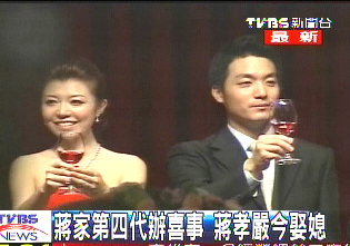 事實(shí)上,小兩口已經(jīng)在美國(guó)登記結(jié)婚,不過臺(tái)灣禮俗不可免,蔣孝嚴(yán)夫婦一大早就前往宜蘭迎娶新娘,兒子才是主角,當(dāng)老爸的不敢太高調(diào)。而邀請(qǐng)誰來參加婚宴呢?蔣孝嚴(yán)傷透腦筋。