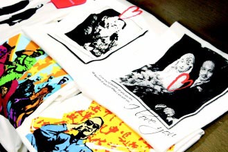 “蔣生活運動”首波商品共17款,分成4個系列,每個系列都發(fā)行包括T恤、筆記本和明信片。主要設計手法是運用年輕人熟悉的普普風,將兩蔣的歷史照片、名言語錄轉為鮮艷、前衛(wèi)的圖案。