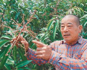 南化鄉(xiāng)農(nóng)會農(nóng)事小組長洪長吉表示,今年二月芒果花盛開,本以為有好收成,沒料到二月高溫又吹南風,加上不不雨,花都烤焦了;三月初突降暴雨,芒果結(jié)果率不佳,多數(shù)成了“空包彈”,有果肉無果核,小果長不大,逐漸萎縮,樹枝一搖就掉滿地。