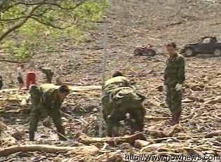 中新網8月18日電 據(jù)臺灣“今日新聞”報道,18日臺軍官兵持續(xù)在高雄縣六龜鄉(xiāng)新開部落進行地毯式搜索,尋找罹難者遺體。士兵們頂著太陽在土石堆中慢慢嗅聞,并且一一做記號,等著“怪手”來挖。