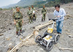 搜救人員表示,今天會再運送兩臺儀器到小林村幫組搜尋,因災(zāi)難發(fā)生當(dāng)時很多人在屋內(nèi),故會先用儀器探測找出房舍再開挖。他們介紹儀器說,“電磁波探測儀”用來找尋地面下的石油、探礦,探測深度達(dá)十米;“透地雷達(dá)”則是發(fā)射雷射波,探測地面下是否有物體存在。