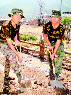 村民說,進(jìn)入桃源鄉(xiāng)救災(zāi)的臺軍都很年輕,“看到這群80后流汗付出,讓我們很感動(dòng)!睘楦兄x他們協(xié)助重建家園,炒野菜、殺山豬幫臺軍們加菜。