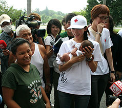 林志玲由臺(tái)灣紅十字會(huì)人員陪同,上午到高雄縣陸軍官校營區(qū)擔(dān)任半天志愿者,與小朋友、殘障災(zāi)民互動(dòng)。很多民眾很興奮,利用行動(dòng)電話的照相、錄像功能拍下第一線接觸的畫面。