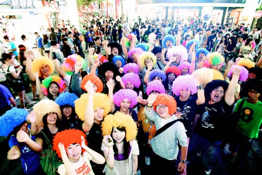 中新網(wǎng)9月27日電 據(jù)臺(tái)灣《聯(lián)合報(bào)》報(bào)道,臺(tái)灣小學(xué)老師吳睿哲發(fā)起“A-BOW活動(dòng)”,26日晚號(hào)召數(shù)十名網(wǎng)友戴起“爆炸頭”假發(fā)逛臺(tái)北西門町,藉以鼓舞、改變自己。