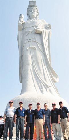 縣府文化局專員吳曉云說,縣府大力爭取當局支持興建媽祖巨神像,并邀請“立法院長”王金平出任籌備會榮譽主委,今年6月動土興建,10月初完成高達28.8公尺的巨像,全部以花崗巖打造,是全世界最高的媽祖巨石神像,日前舉行開光儀式,25日于“媽祖升天祭”大典中正式揭幕。