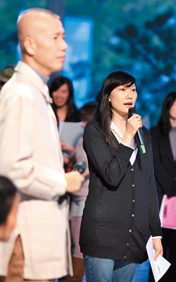 一現(xiàn)身就成為鎂光燈焦點,馬元中的壓力可想而知。她專注地傾聽老板蔡國強的致詞內容,以流暢的英文快速翻譯出來。馬英九女兒大秀英文,全場屏息聆聽?赡苁且驗榫o張,不難聽出馬元中的聲音有點發(fā)抖,時而甩頭發(fā)的小動作,也透露出要在眾媒體前擔任現(xiàn)場翻譯員,這份差事真不容易。致詞結束后,馬元中立刻離開,深怕如果再多待一刻,恐又搶走蔡國強的風采。