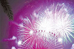 中新網(wǎng)12月29日電 據(jù)臺(tái)灣《中國(guó)時(shí)報(bào)》報(bào)道,高雄縣感恩祈?缒晖頃(huì)上,預(yù)計(jì)施放三萬(wàn)發(fā)煙火,全程達(dá)八分鐘,不論數(shù)量、時(shí)間均創(chuàng)全臺(tái)之冠,更有二○一○盞祈福連燈、摩天輪火焰時(shí)鐘等特殊煙火,要與民眾共度溫馨難忘的跨年夜。