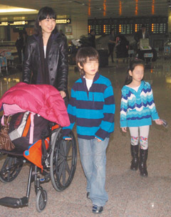 中新網(wǎng)1月21日電 據(jù)臺灣《聯(lián)合報(bào)》報(bào)道,國民黨秘書長金溥聰?shù)钠拮又芑坻门c一雙兒女結(jié)束5個月的華盛頓之旅,20日清晨返抵臺灣。由于周慧婷之前才摔傷,一路上還得照料2個也都受傷的孩子,一到桃園機(jī)場,周慧婷帶著孩子上車走了,讓趕來接機(jī)的金溥聰撲了空。這對糊涂夫妻還得靠記者幫忙傳話,連周慧婷也笑說:“我不知道他要來接,他可能是想給我驚喜!