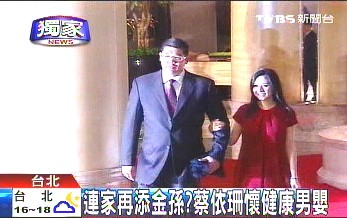 連勝文說要調(diào)整重心,只是老大是男生,原本期待第二胎是美麗女娃,現(xiàn)在希望可能落空。嬰兒超音波初步顯示,蔡依珊懷里的寶寶是一名健康的男嬰,也就是說連戰(zhàn)很有可能在今年7月就抱到第2個金孫。