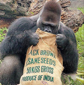 資料顯示,公成年金剛猩猩背上有象征年長(zhǎng)的銀白長(zhǎng)毛,有人稱之“銀背”。性情溫和、重視家庭,生氣時(shí)會(huì)搥胸吼叫。幼年期的搥胸動(dòng)作多為表達(dá)滿足之意,成年時(shí)的搥胸意義復(fù)雜,有時(shí)用來警告入侵者。