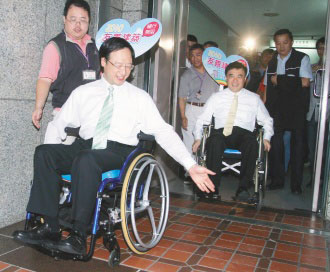 中新網(wǎng)6月3日電 據(jù)臺灣《聯(lián)合報》報道,臺北2010友善建筑(無障礙建筑)評選活動,2日選在獲得首屆“友善建筑”的臺北市府1樓ENJOY餐廳開跑,“內(nèi)政部長”江宜樺及臺北市長郝龍斌都出席,并坐輪椅體驗無障礙設(shè)施。