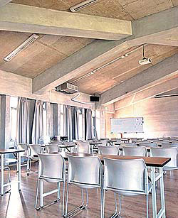 林志成2009年負(fù)責(zé)興建的“仰山會(huì)館”,也融入許多宜蘭厝的精神,包括一樓入口處半室內(nèi)空間與停車場結(jié)合,下雨時(shí)就可作為活動(dòng)空間,外墻以宜蘭的洗石子傳統(tǒng)建材、斜屋頂適應(yīng)宜蘭的多雨天候;但他也表示,斜屋頂造成三樓會(huì)議空間的聲音無法集中,必須以不規(guī)則的天花板來修正音場。