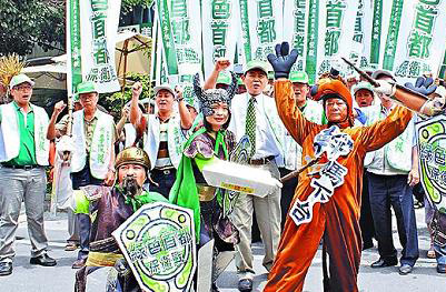 臺(tái)南市有300多名臺(tái)聯(lián)黨支持者欲北上嗆馬,卻因租不到游覽車,臺(tái)聯(lián)市議員參選人丘傭哲竟異想天開(kāi),昨與30名支持者分乘4艘舢舨,從曾文溪口闖關(guān)出海,打算循水路往北駛向淡水河。丘傭哲等人登船后,駛離不到100公尺,隨即被海巡人員攔下。(●環(huán)球時(shí)報(bào)報(bào)駐臺(tái)北特約記者 蕭師言 ●本報(bào)記者 吳 薇)