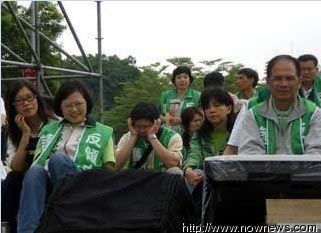 至于謝長(zhǎng)廷,也因?yàn)榫癫粷?jì),先到后臺(tái)稍做休息,而靜坐舞臺(tái)上,僅剩黨主席蔡英文和游錫堃率領(lǐng)部分黨公職坐在臺(tái)上,聽(tīng)著新聞關(guān)心時(shí)事。此外,現(xiàn)場(chǎng)也可發(fā)現(xiàn),部分“立委”因靜坐一宿,體力已超出負(fù)荷,紛紛在舞臺(tái)上打起瞌睡,有的人甚至悄悄地消失不見(jiàn)了。