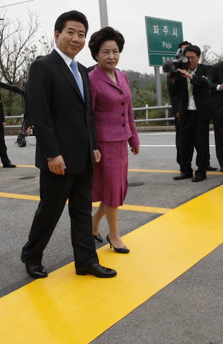 2007年10月2日上午,韓國總統(tǒng)盧武鉉跨過了韓朝軍事分界線,成為首位跨越軍分線入朝的韓國總統(tǒng)。朝鮮官員在軍事分界線朝鮮一側(cè)歡迎。