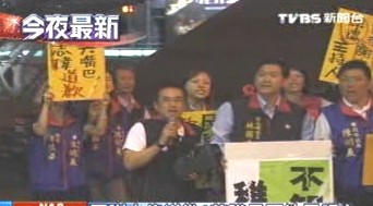 藍(lán)營議員高喊:“謝志偉道歉!民視負(fù)責(zé)!謝志偉道歉!”藍(lán)營議員算準(zhǔn)謝志偉上班時(shí)間,帶隊(duì)到民視大門口抗議,但兩排警力層層擋住大門口,臺北縣議員陳明義,腳進(jìn)不去,干脆用手丟雞蛋泄憤。