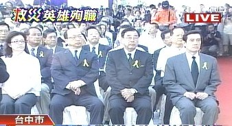 中新網(wǎng)8月19日電 據(jù)臺灣TVBS報道,臺風“莫拉克”引發(fā)“八八水災”重創(chuàng)臺灣南部,臺灣空勤隊3名英雄張順發(fā)、王宗立和黃鎂智為救人墜機殉職。臺中水湳機場19日舉行告別式,馬英九、“內政部長”廖了以、臺中市長胡志強及呂秀蓮都到場致意。