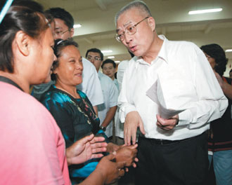 昨晚八時(shí)二十分,吳敦義與“副院長(zhǎng)”朱立倫、“秘書(shū)長(zhǎng)”林中森等官員,在高雄縣長(zhǎng)楊秋興陪同下,抵達(dá)陸軍官校禮堂,與收容在校內(nèi)的桃源鄉(xiāng)災(zāi)民座談,聽(tīng)取災(zāi)民心聲。