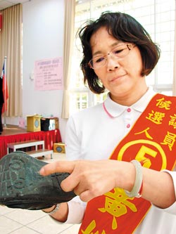 桃園縣議員第一選區(qū)公辦政見發(fā)表會(huì)二十六日舉行,十九位候選人中僅五人到場,而呂秀紋則因?yàn)檫t到,錯(cuò)失上臺(tái)闡述政見的機(jī)會(huì),郭貴香丈夫、也是前縣議員黃享欽,原本欲替老婆代打遭制止,而參與政見發(fā)表會(huì)候選人各出奇招,黃婉如脫鞋秀破鞋表示勤走基層、黃智銘拿出口罩凸顯甲型流感疫情嚴(yán)重性,盼選民能清楚了解其政見。