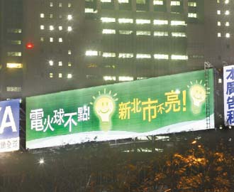 此外,板橋火車站旁客運(yùn)站上方,上周六出現(xiàn)一面“電火球不點、新北市不亮”大型廣告牌,勸進(jìn)蘇貞昌參選新北市長,臺北縣府雖覺得刺眼,昨天仍核準(zhǔn)該廣告。