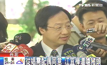 有記者當(dāng)場(chǎng)發(fā)問(wèn):“如果你太太要你簽同意書,你會(huì)簽嗎?”江宜樺回應(yīng)表示:“不回答個(gè)人假設(shè)問(wèn)題。”對(duì)此,記者表示這是歧視,“性工作既然除罰,為什么要簽同意書?如果沒(méi)有配偶知情或同意下,跟別的男女發(fā)生性行為,你的配偶是可以提告的,說(shuō)真的這是個(gè)‘豬頭’建議,浪費(fèi)錢做這種東西。”