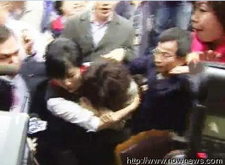 混亂中民進(jìn)黨籍“立委”邱議瑩被國民黨籍“立委”呂學(xué)樟推倒。國民黨籍“立委”徐少萍則是從背后熊抱民進(jìn)黨籍“立委”林淑芬,兩人因?yàn)橹匦牟环(wěn)跌倒在地上,徐少萍還堅(jiān)持不放手,十分拼命。