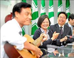 中新網(wǎng)6月3日電 據(jù)臺(tái)灣《自由時(shí)報(bào)》報(bào)道,民進(jìn)黨二日成立“五都”選戰(zhàn)小組,由前秘書長(zhǎng)吳乃仁擔(dān)任召集人,為年底“五都選舉”擬定策略。黨主席蔡英文在歡送秘書長(zhǎng)蘇嘉全參選大臺(tái)中市長(zhǎng)記者會(huì)上,兩人“答嘴鼓”。蘇嘉全還拿著吉他對(duì)著蔡英文唱情歌,蔡英文尷尬地笑了出來(lái)。