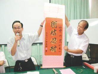 許添財之友會及臺南縣后援會干部近三百人昨天在臺南縣東山鄉(xiāng)聚餐,許添財雖未出席,但送來“團結(jié)忍耐”中堂,會場彌漫主戰(zhàn)氣氛;會中決議,一旦許添財要參選大臺南市長,一定全力相挺。