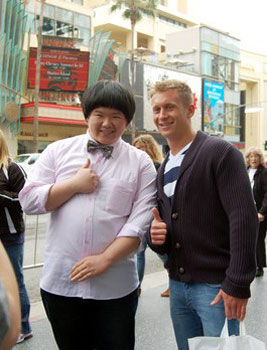 中新網(wǎng)4月23日電 據(jù)“中央社”報(bào)道,臺(tái)“小胖”林育群23日前往洛杉磯好萊塢星光大道朝圣,因?yàn)榫W(wǎng)絡(luò)上的高點(diǎn)擊率與脫口秀節(jié)目的訪問,小胖一路上頻頻被路人認(rèn)出,還有老外call out,當(dāng)場(chǎng)電話連線。