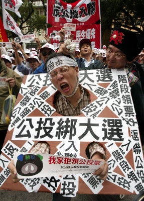 中新網(wǎng)10月26日電 臺(tái)灣“中選會(huì)”今天下午討論“立委”選舉與“公投”領(lǐng)選票方式,可能須等到晚間才會(huì)有結(jié)果。反“公投入聯(lián)”行動(dòng)聯(lián)盟上午前往抗議陳情。