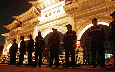據(jù)臺(tái)灣《聯(lián)合報(bào)》報(bào)道,經(jīng)過(guò)昨天中午的沖撞記者意外事件,下午約有一百至一百五十名民眾聚集在“大中至正”牌樓下。警方則是出動(dòng)三百名警力。近三點(diǎn),警方拿起盾牌,第一批拒馬出場(chǎng),現(xiàn)場(chǎng)零星沖突不斷,還有情緒激動(dòng)的老先生在現(xiàn)場(chǎng)哭喊,但都未影響稍后拆卸正廳牌匾的作業(yè),一直到夜里十一點(diǎn)才收工。