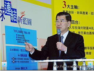 至于三大主軸的意義為何,蕭萬長表示,“產(chǎn)業(yè)創(chuàng)新”以服務業(yè)為就業(yè)引擎、制造業(yè)朝高值化及低碳化發(fā)展、農(nóng)業(yè)朝科技化及企業(yè)化發(fā)展;“新興產(chǎn)業(yè)”推動文化創(chuàng)意展業(yè)、節(jié)能低碳及替代能源等新能源產(chǎn)業(yè)、智慧生活展業(yè)、生技科技醫(yī)藥展業(yè)發(fā)展;“政策松綁”以服務業(yè)為首管制大松綁、以功能獎勵取代產(chǎn)業(yè)補貼、將文化觀光等產(chǎn)業(yè)跨領域結(jié)合。
