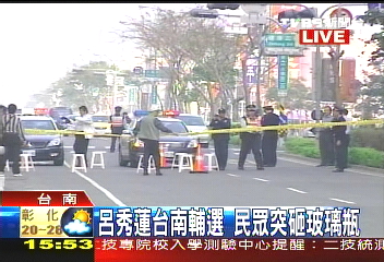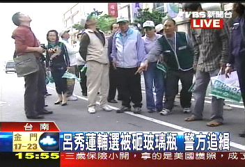 呂秀蓮在臺(tái)南沿街拉票險(xiǎn)被玻璃瓶砸中(組圖)