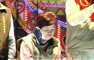 與此同時(shí),民進(jìn)黨候選人余天在臺(tái)北縣舉辦造勢(shì)晚會(huì)。因嚴(yán)重氣喘住院的妻子也跟醫(yī)院告假來(lái)到現(xiàn)場(chǎng),痛哭失聲為丈夫站臺(tái)。