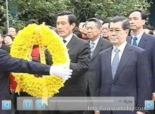 據(jù)臺灣東森新聞報道,站在熟悉的頭寮陵寢,國民黨08年“大選”參選人馬英九和蕭萬長表情肅穆的向蔣經(jīng)國先生致上深深的鞠躬。