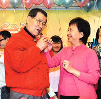 蕭萬(wàn)長(zhǎng)參加情人節(jié)活動(dòng) 與夫人互喂巧克力(圖)