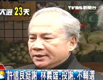 據(jù)臺(tái)灣TVBS報(bào)道,林義雄2月28日到義光教會(huì)即當(dāng)年林宅血案事發(fā)地參加活動(dòng)。對(duì)于前民進(jìn)黨主席許信良公開表態(tài)支持謝長廷,林義雄說,他不打算去幫謝長廷輔選,但是他已經(jīng)決定要把票投給謝長廷。